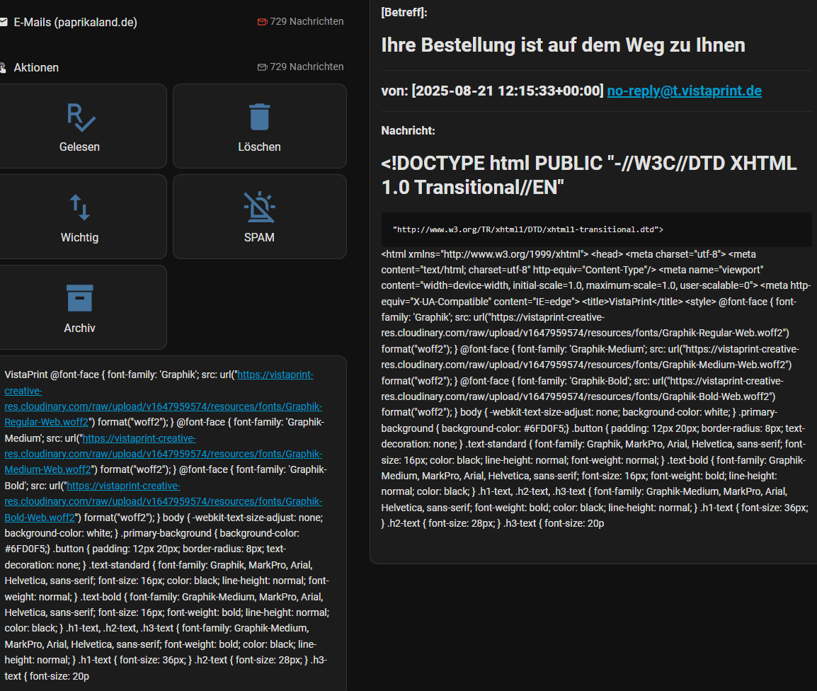 ich habe immer wieder probleme die emails zu lesen statt die css und html anweisungen